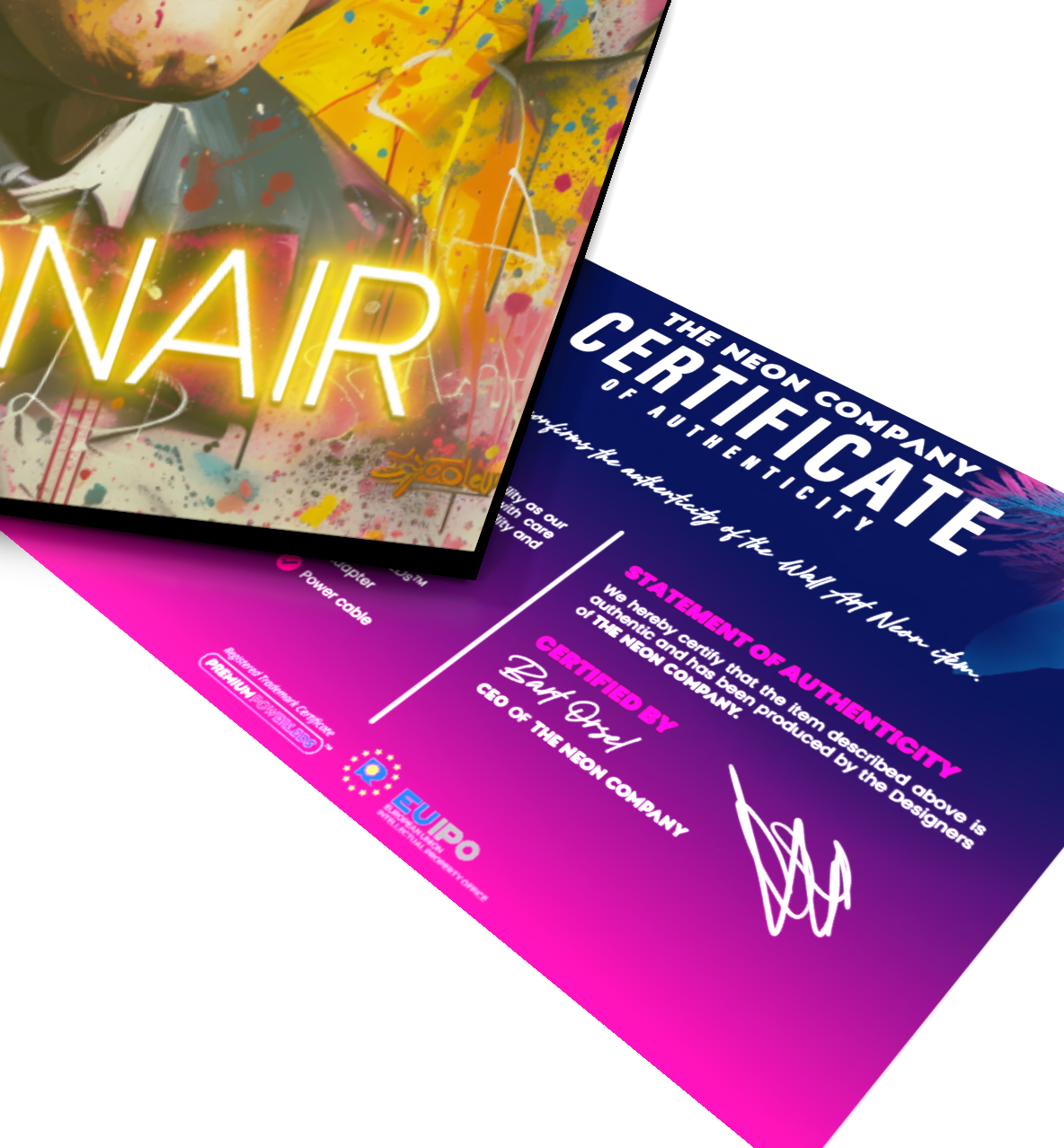 Onze Premium Limited Edition kunstwerken zijn in beperkte oplage beschikbaar en slechts tijdelijk te bestellen. Wij houden onze Neon Artworks graag uniek en exclusief.